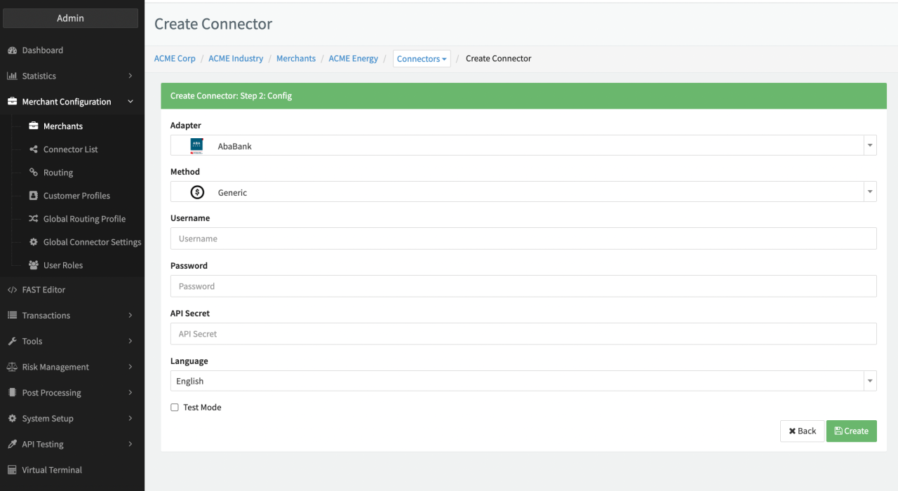 Configure the following parameters for the Connector (see Connector Config - Ababank):