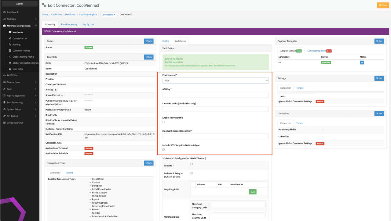 Additionally the following optional parameters can be configured (Connector Detail Overview - Adyen Checkout - Vault Configuration Part II)