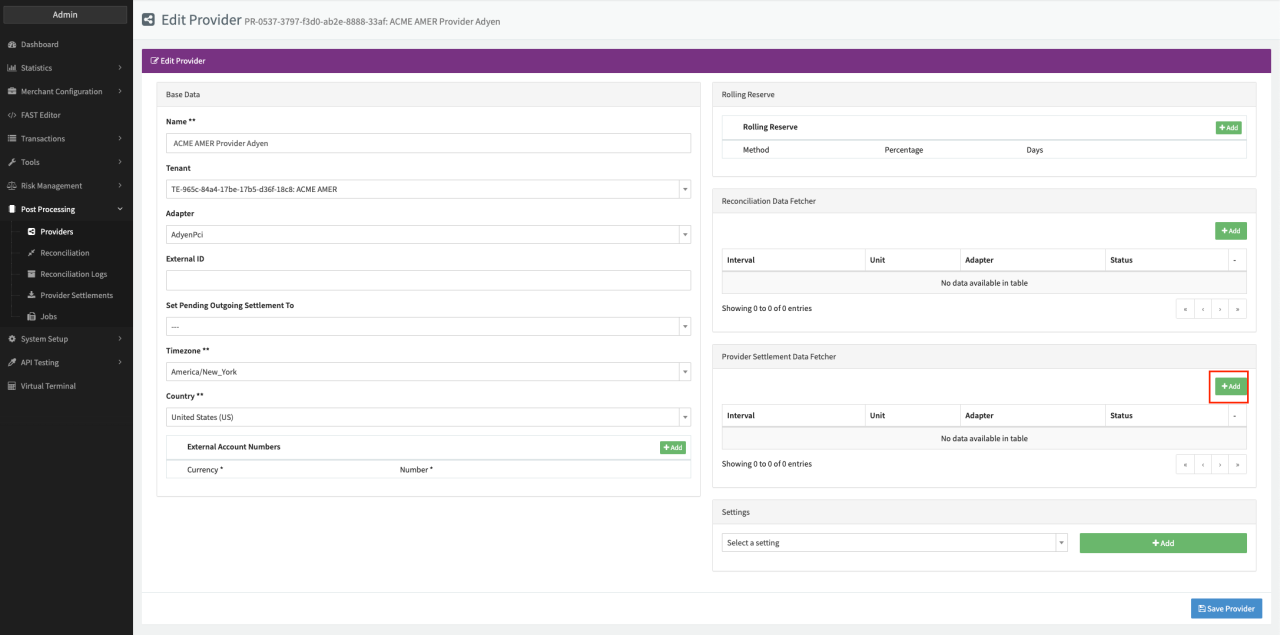 (see Edit Provider Settlement Data Fetcher Provider Level):