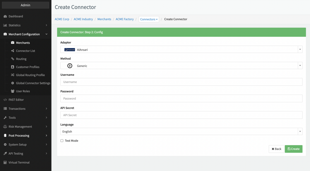 - Fill in the mandatory API Secret — Generated and provided by PSP