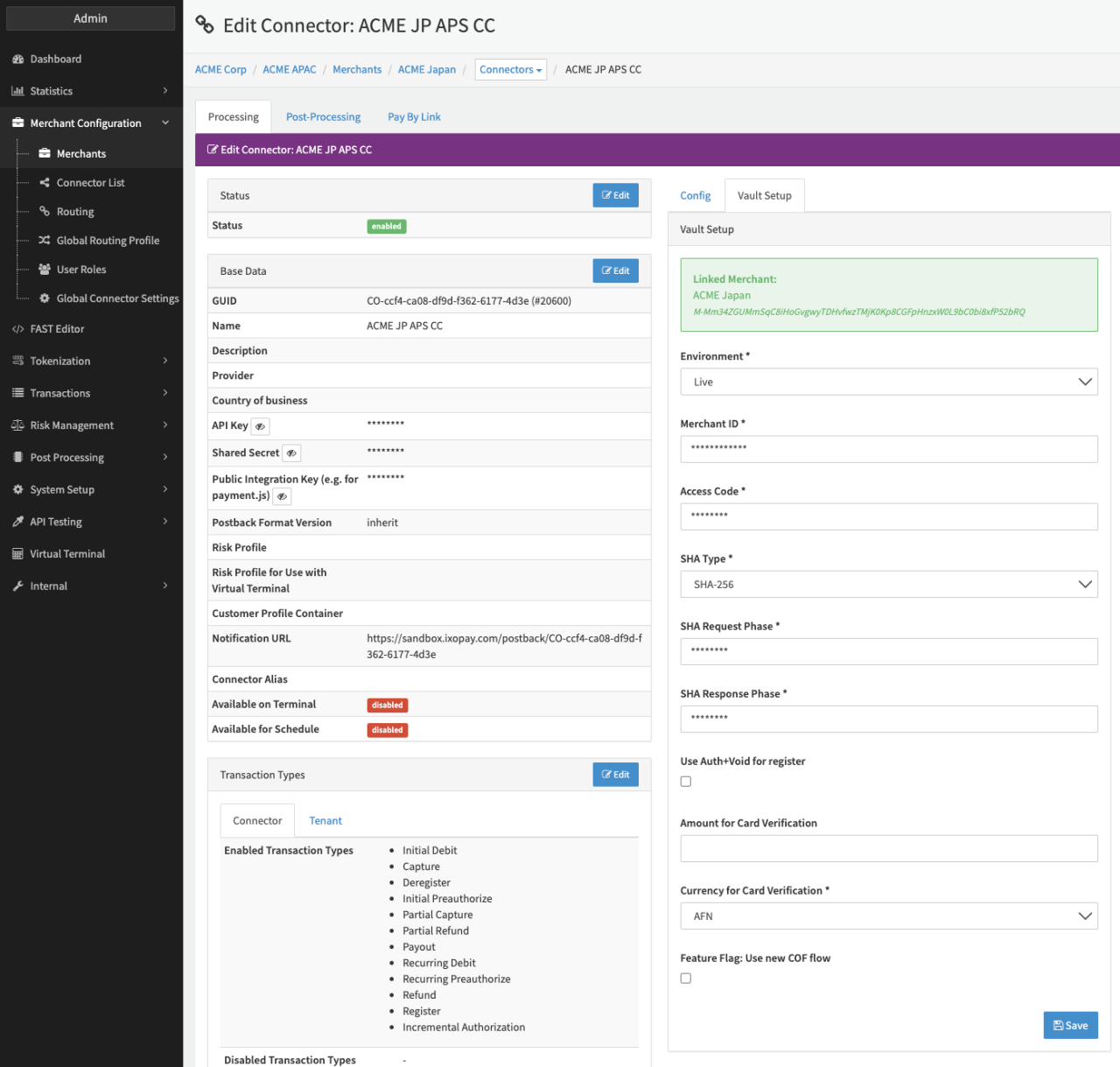 Configure the following parameters for the Connector (see Connector Detail Overview - Amazon Payments Creditcard - Vault Configuration):