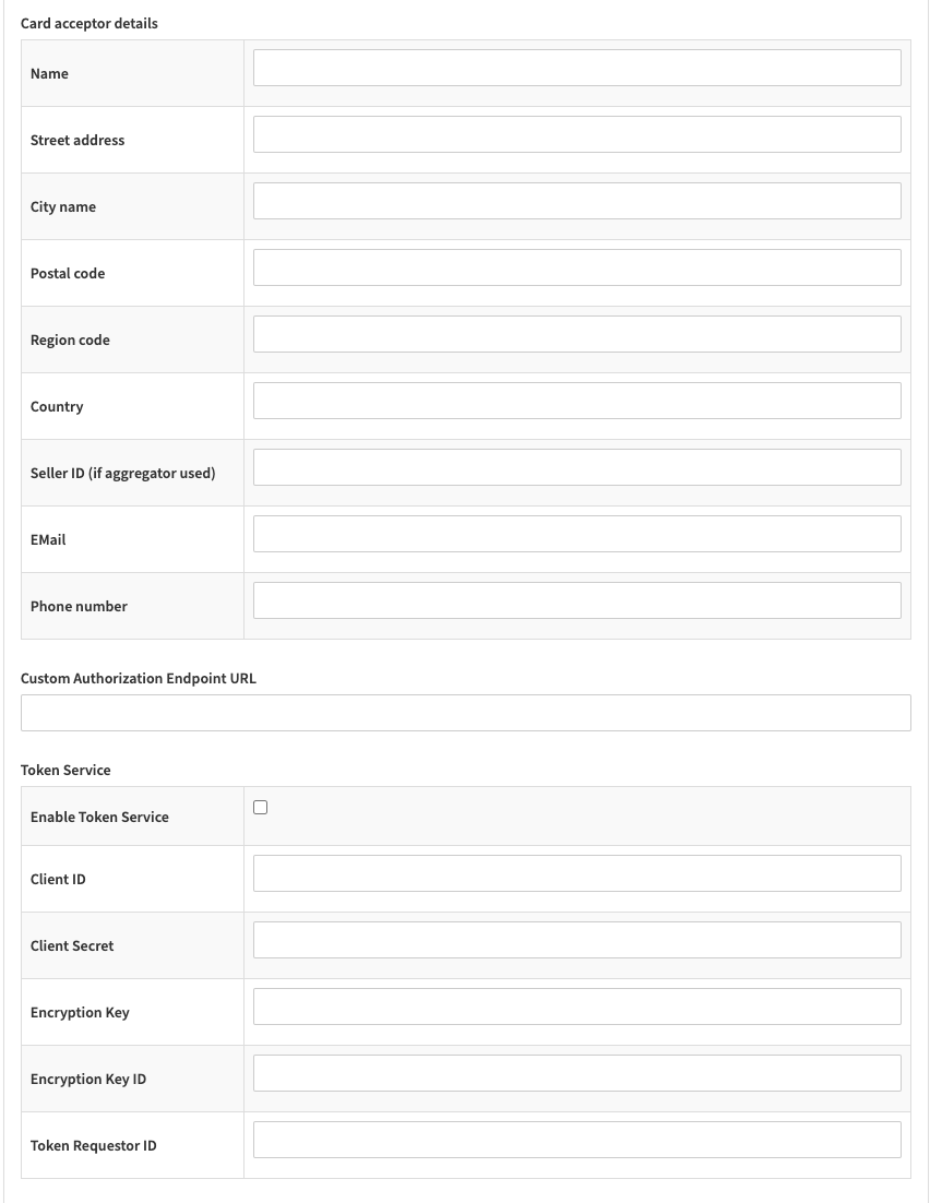 - Fill in the Card acceptor details: