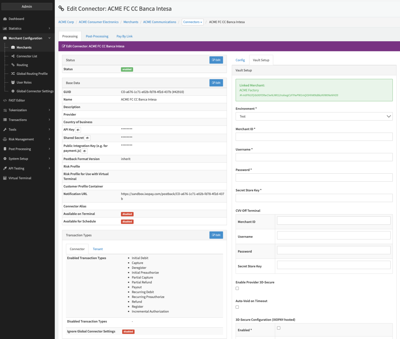 Configure the following parameters for the Connector (see Connector Detail Overview - Banca Intesa - Vault Configuration):