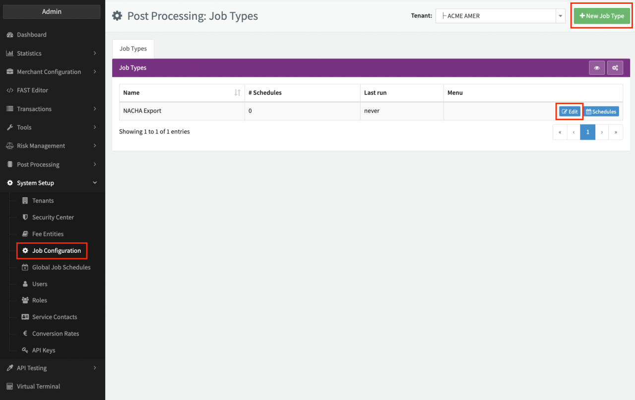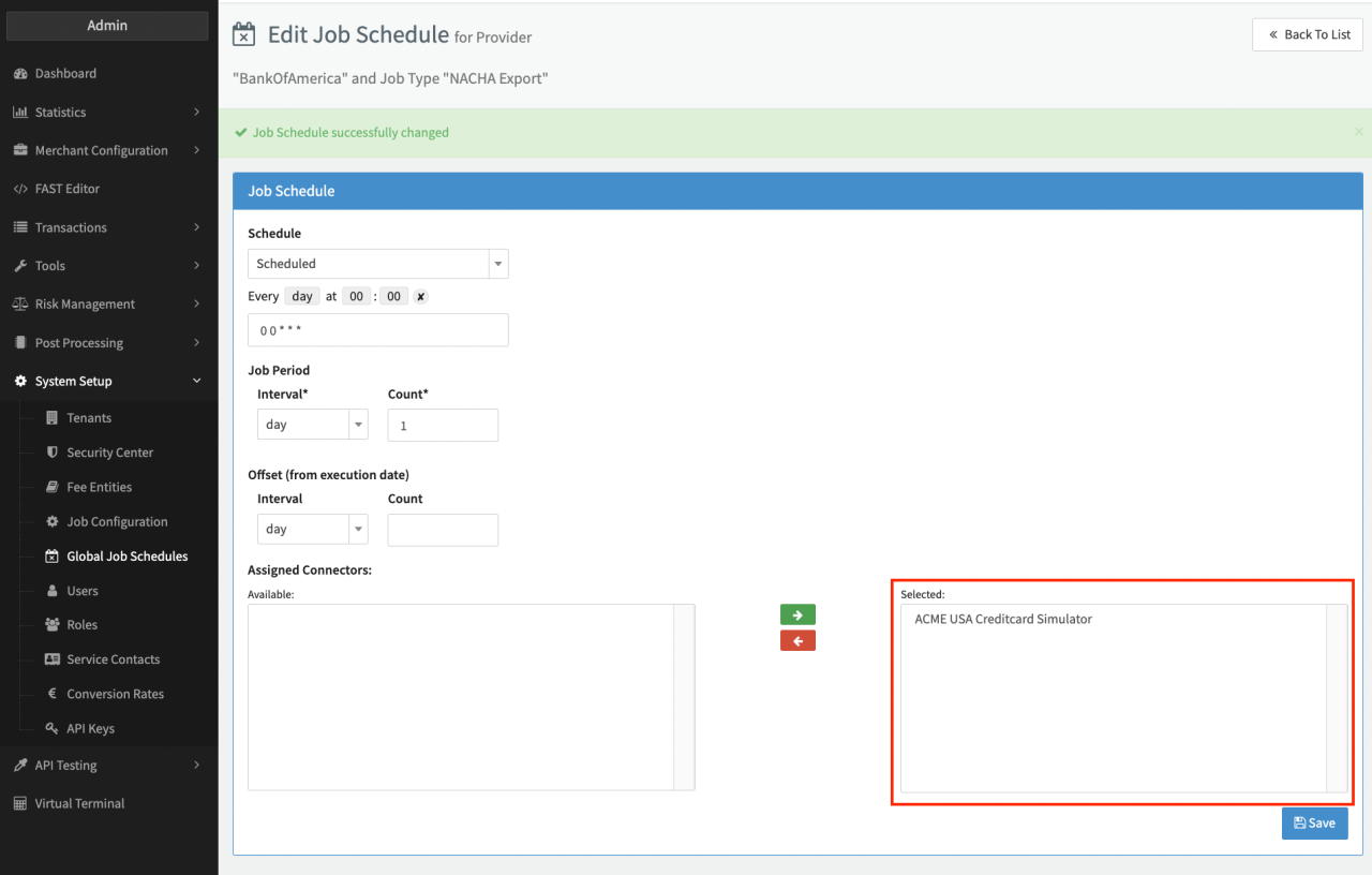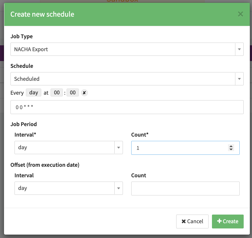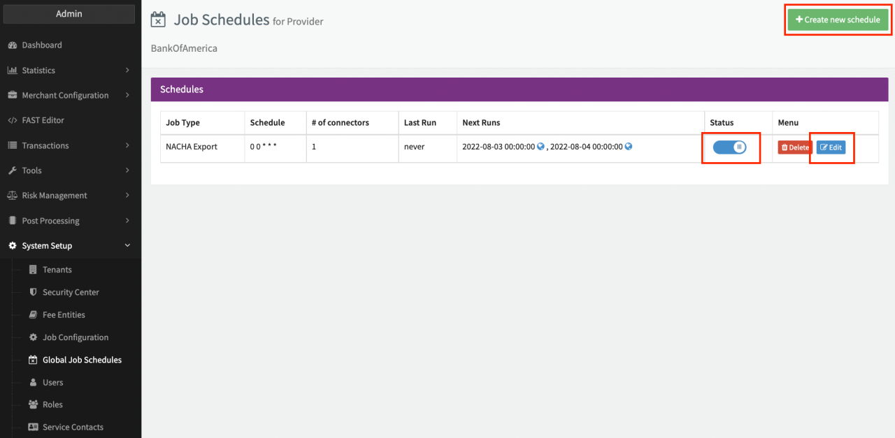 Create a Schedule for the Job Execution of the NACHA Export on Provider level