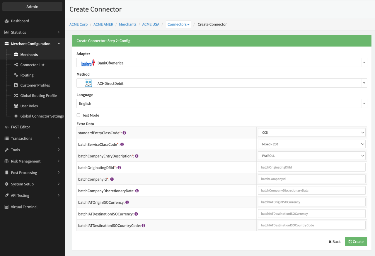 Keep in mind, that for each Standard Entry Class Code (CCD, IAT, PPD, …) a new Connector needs to be configured.