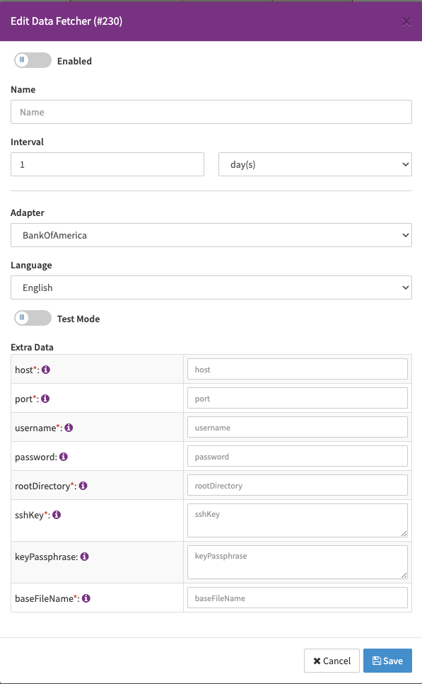 - Fill in the parameter needed and click + Add Data Fetcher (see Data Fetcher)