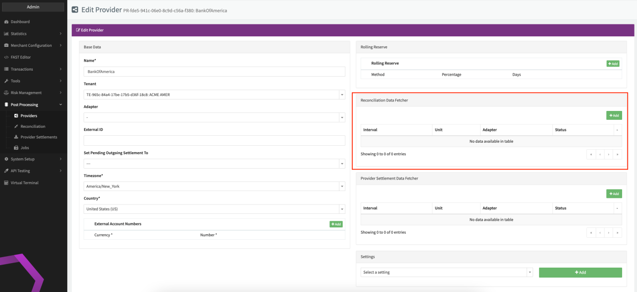 - Add a Reconciliation Data Fetcher (see Edit Provider)