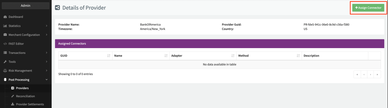 - Select the Connector to be assigned to the Provider (see Connector Selection)