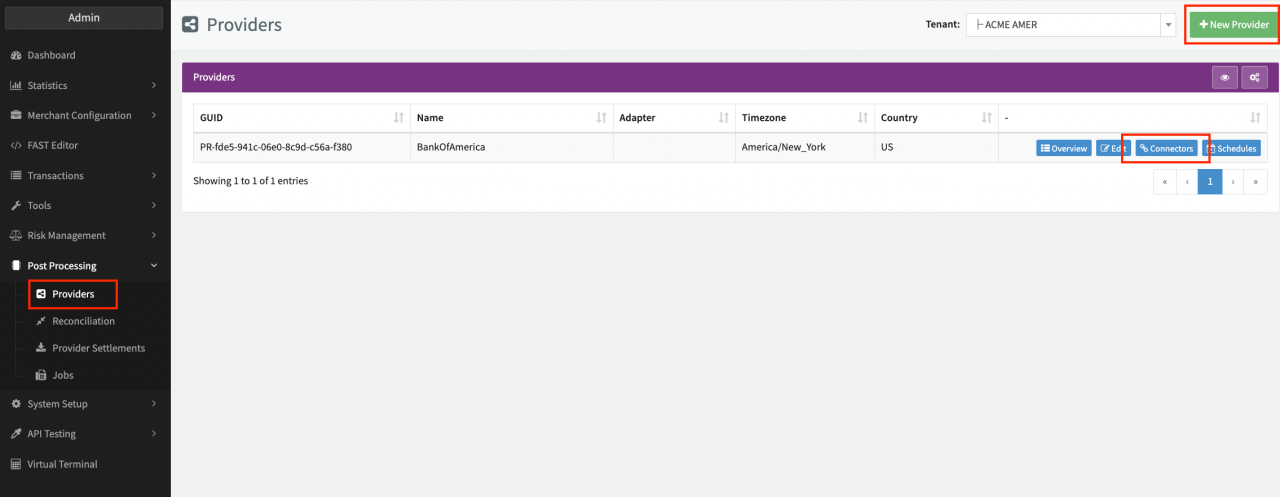 Lastly you need to set up a Provider. This entity in the IXOPAY platform is needed for the actual NACHA Export (Job Configuration - NACHA Export) as well as the Data Fetching for the Reconciliation File (Result File).