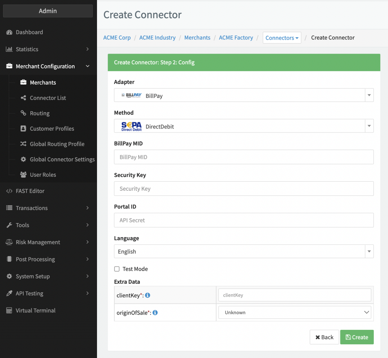 - Fill in the mandatory BillPay MID — Your Merchant-ID, generated and sent by BillPayI
