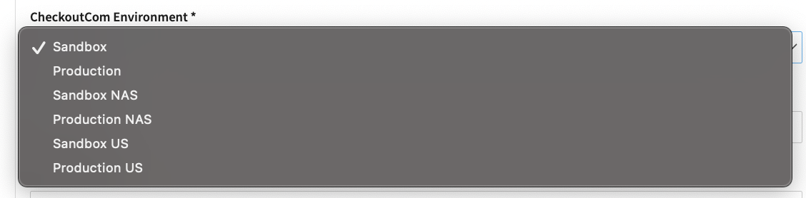 If the selected environment (see Available CheckoutCom Environments) is Production/Sandbox NAS/US enter the