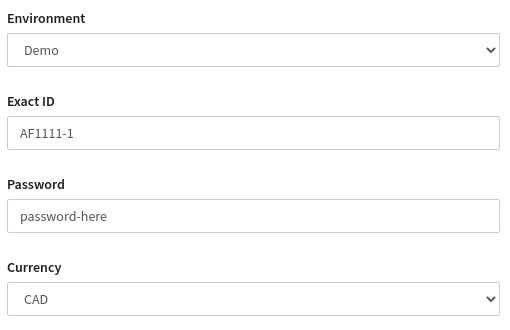 - Fill in the mandatory Password - Password from the E-xact Dashbaord