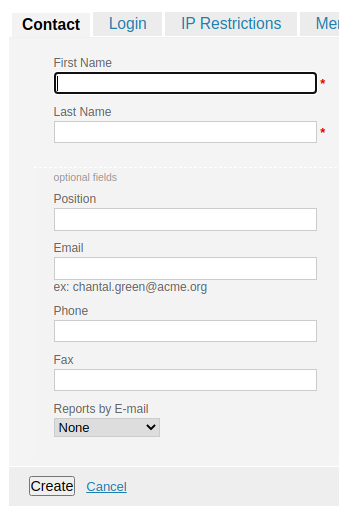 - Fill in the mandatory First Name and Last Name, the other fields as needed, in the Contact section, (Image 7)