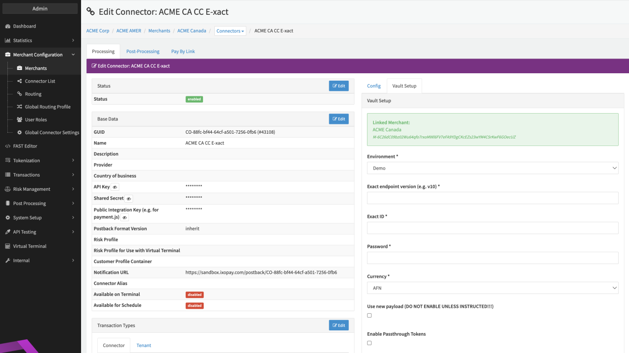 - Fill in the mandatory Exact ID - Gateway ID from the E-xact Dashbaord