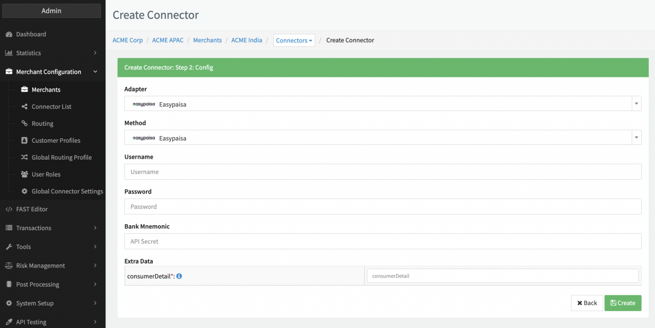 Configure the following parameters for the Connector (see Connector Config - Easypaisa):
