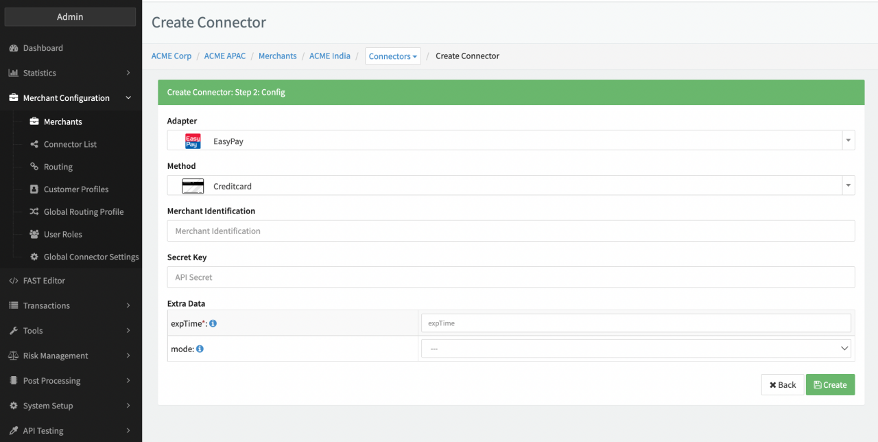 - Fill in the mandatory Merchant Identification — Unique ID to identify the Merchants. Generated and provided by PSP.