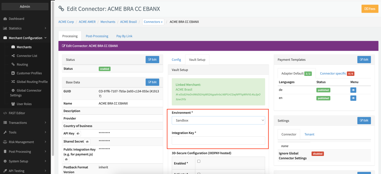 Configure the following parameters for the Connector (see Connector Detail Overview - EBANX - Vault Configuration):