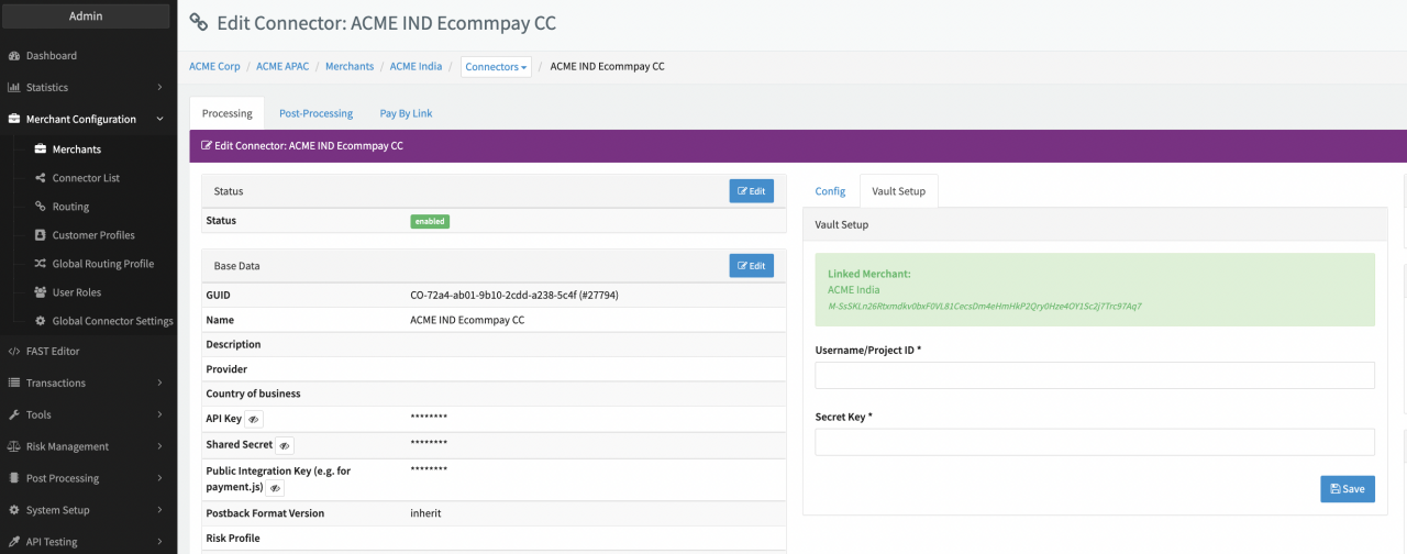 Configure the following parameters for the Connector (see Connector Detail Overview - Ecommpay - Vault Configuration):