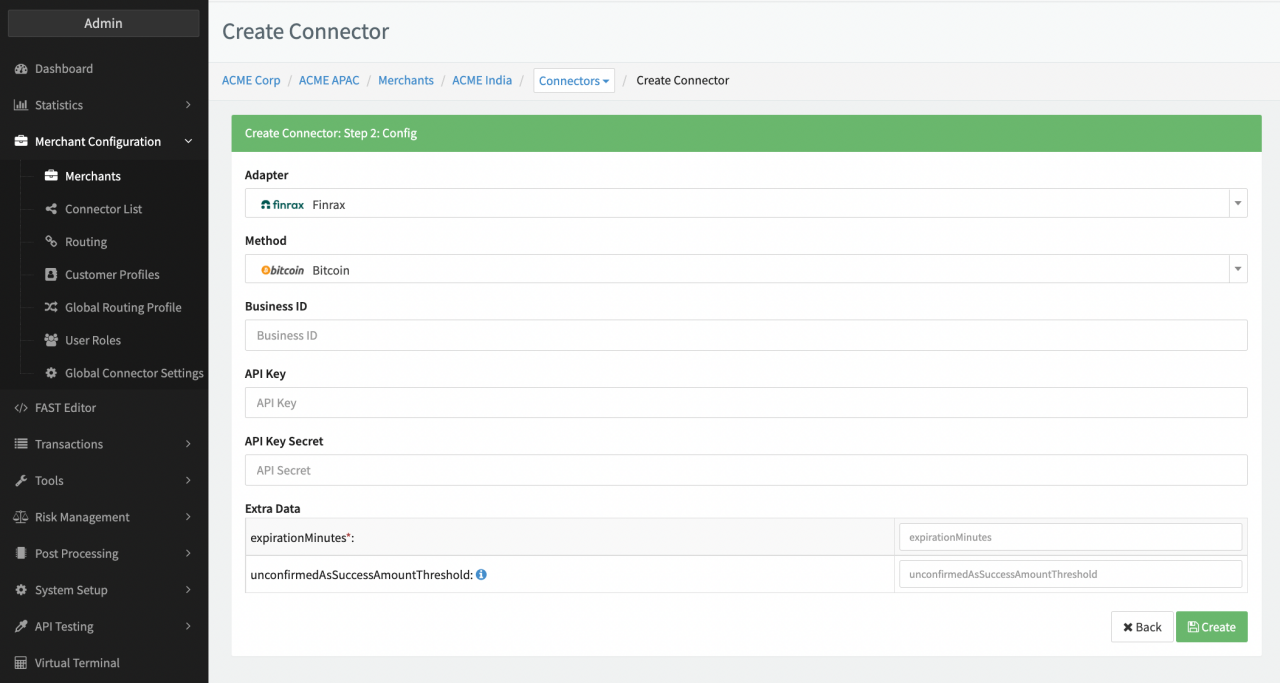 - Fill in the mandatory Extra Data: unconfirmedAsSuccessAmountThreshold —