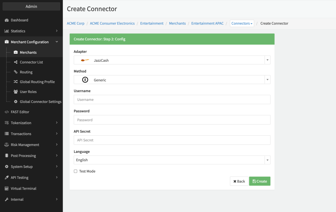 Configure the following parameters for the Connector (see Connector Configuration - Jazzcash - Generic):