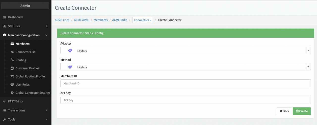 Configure the following parameters for the Connector (see Connector Config - Laybuy):