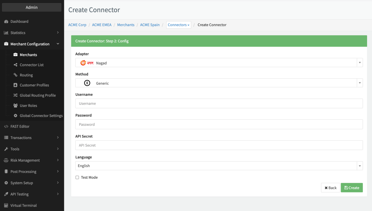 Configure the following parameters for the Connector (see Connector Config - Nagad):