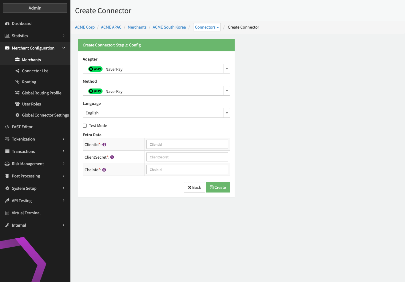 Configure the following parameters for the Connector (see Connector Config - NaverPay):