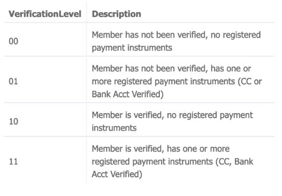 If the Extra Data: Accept only verified users is set to true, only customers with verification levels 10 or 11 are allowed to proceed the payment process. Otherwise an error that the account verification level is insufficient will appear in the API response and the transaction will be aborted (error state).
