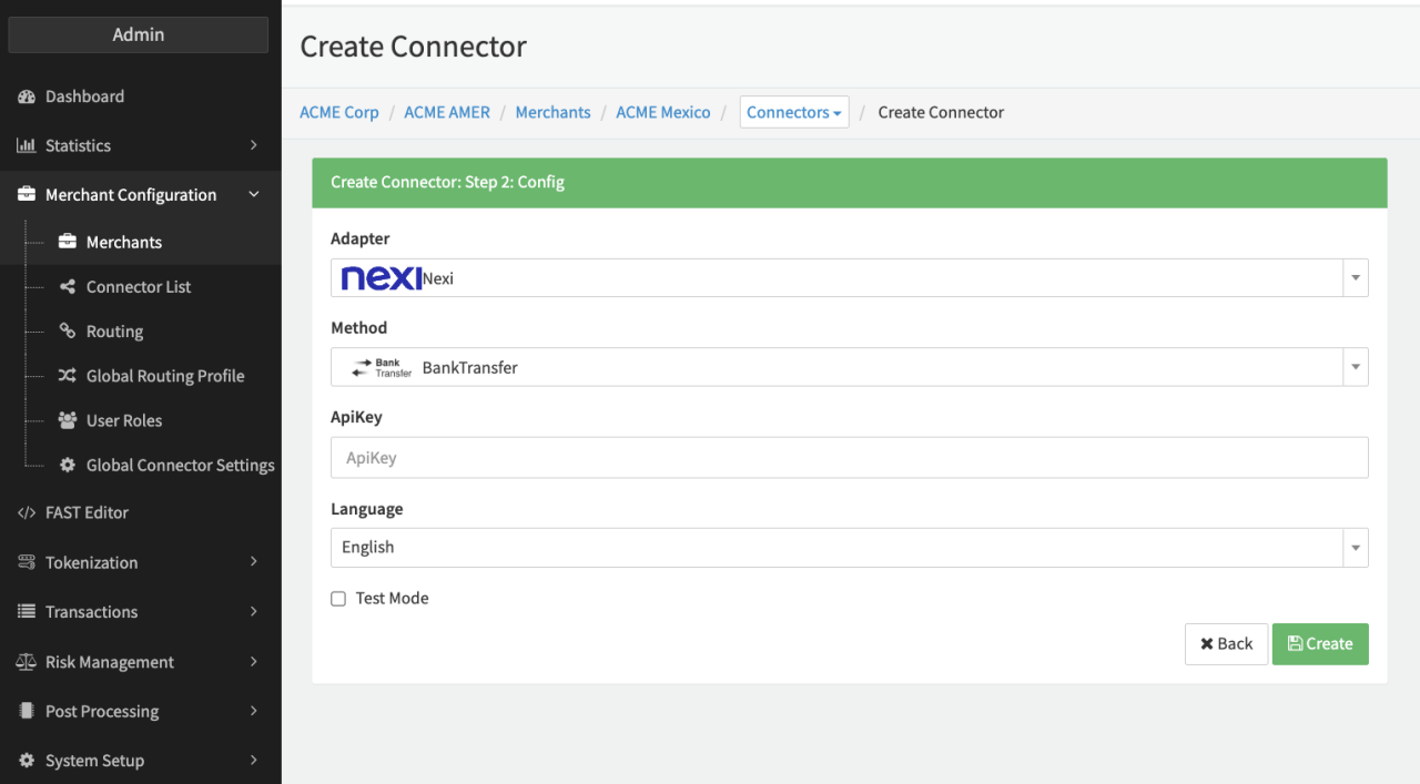 Configure the following parameters for the Connector (see Connector Config - Nexi):
