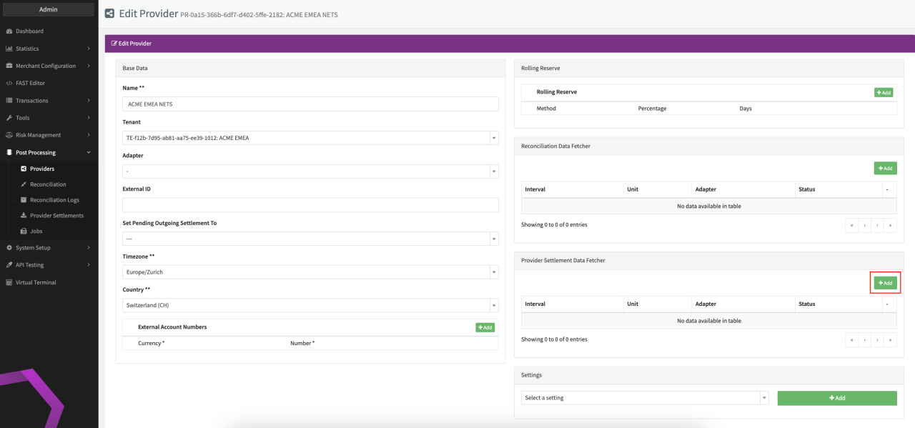 - Fill in the expected Interval in which the Provider Settlement File should be fetched - days, hours