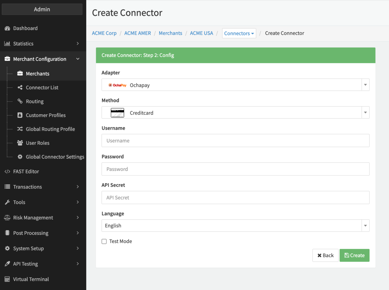 - Fill in the mandatory API Secret — Generated and provided by PSP