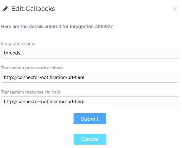 Each payment integration must be configured to send callbacks to the configured IXOPAY platform connector (the callback URL of the connector can be found on the Connector Edit page).