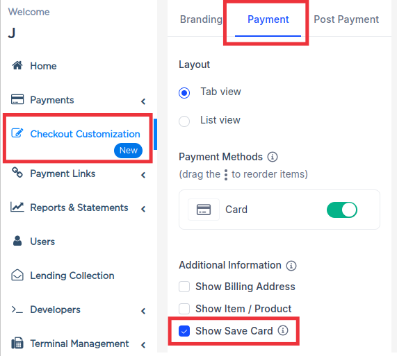 Enable "save card" option