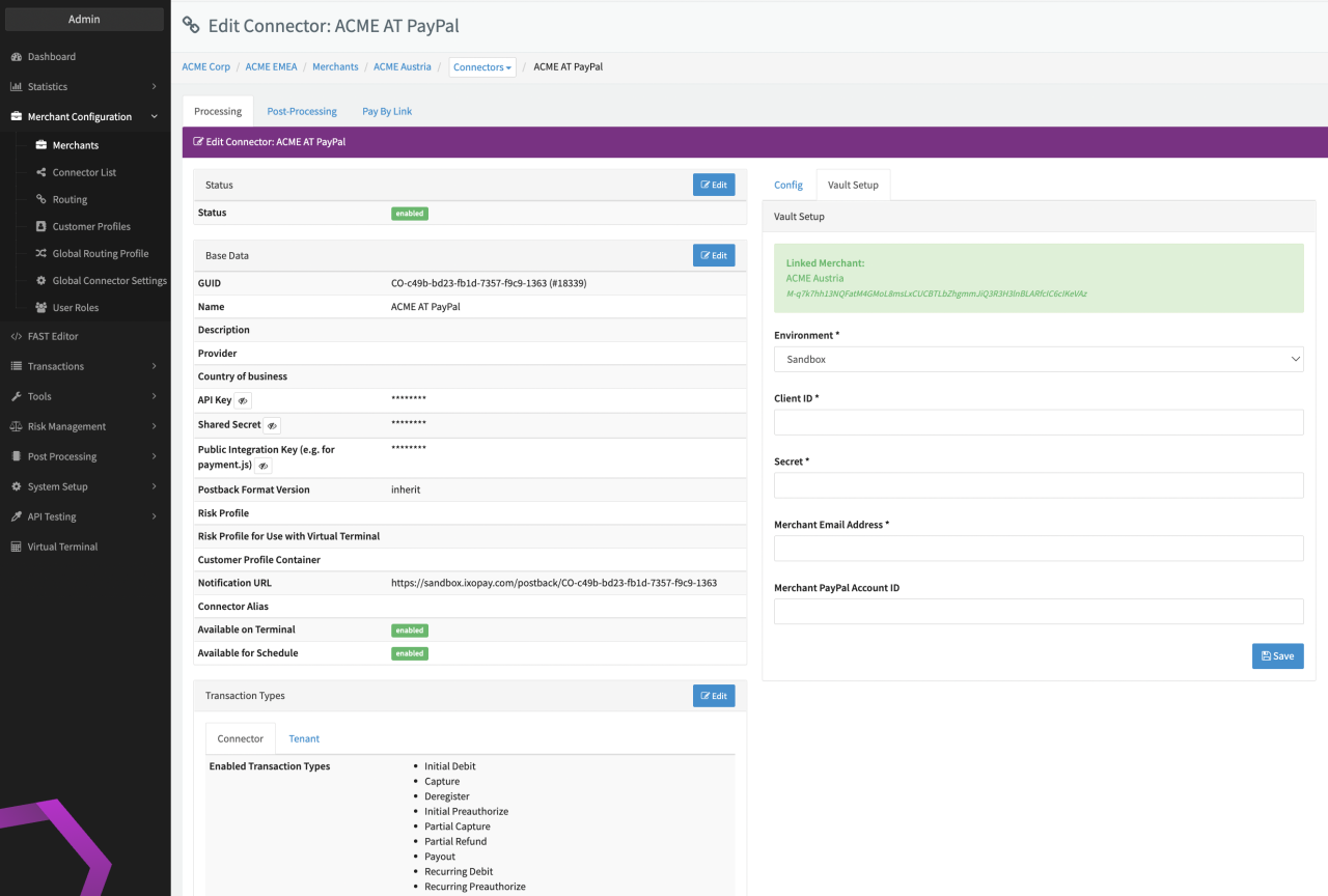 Configure the following parameters for the Connector (see Connector Detail Overview - PayPal - Vault Configuration):