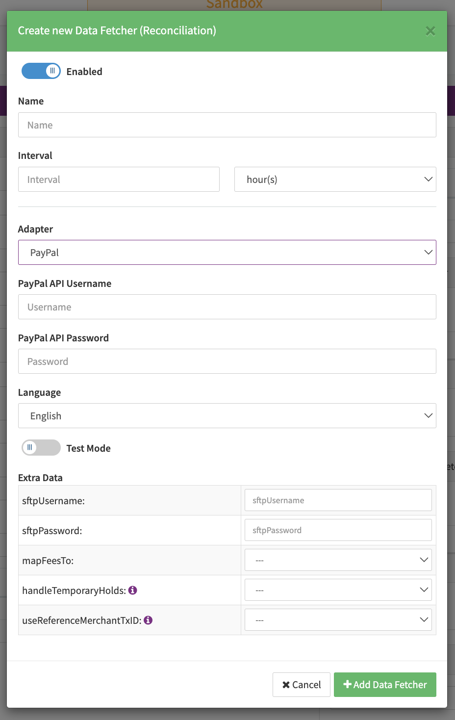 - Select the optional Extra Data: paypalFeeMapping: Provider Fees, Markup Fees — Setting to determine under which Fee Entity the PayPal Fees should be mapped, either Provider Normal Fee or Provider Markup Fee