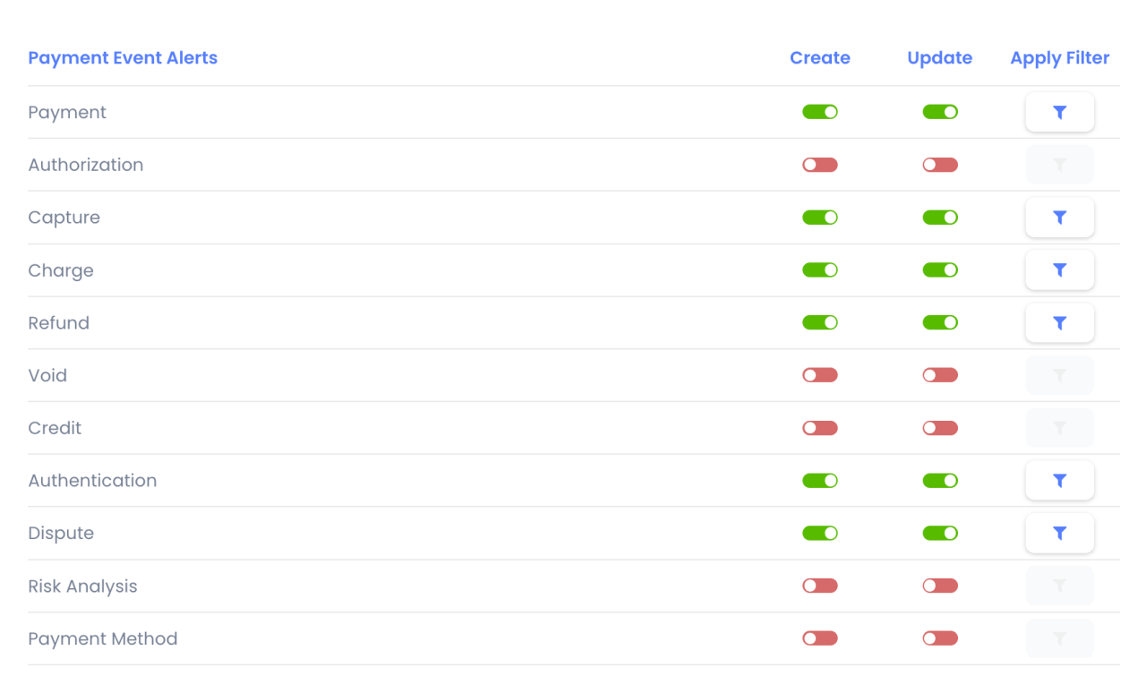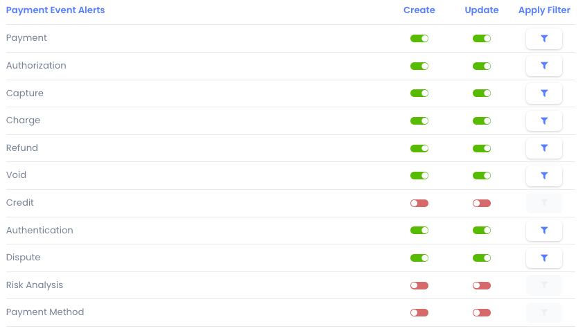 Select the Payment Event Alerts as shown to ensure the transaction will be updated to the correct status in the IXOPAY platform.