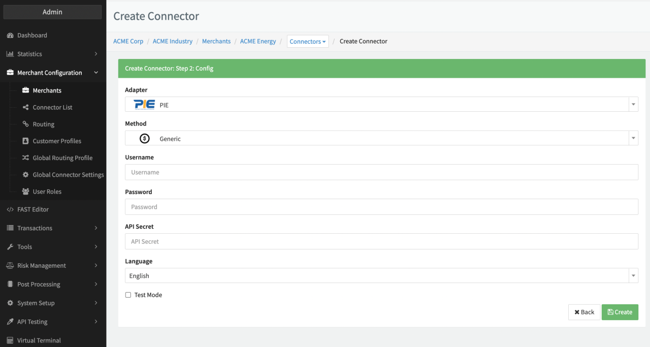 Configure the following parameters for the Connector (see Connector Config - PIE):