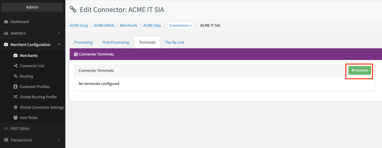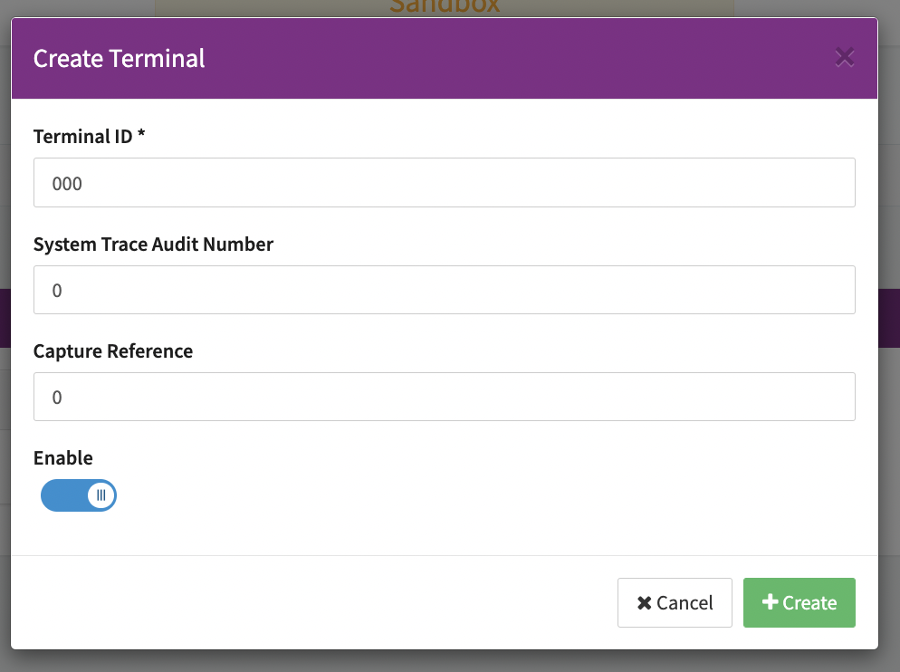 - Check Enable and click + Create (see Terminal Configuration)