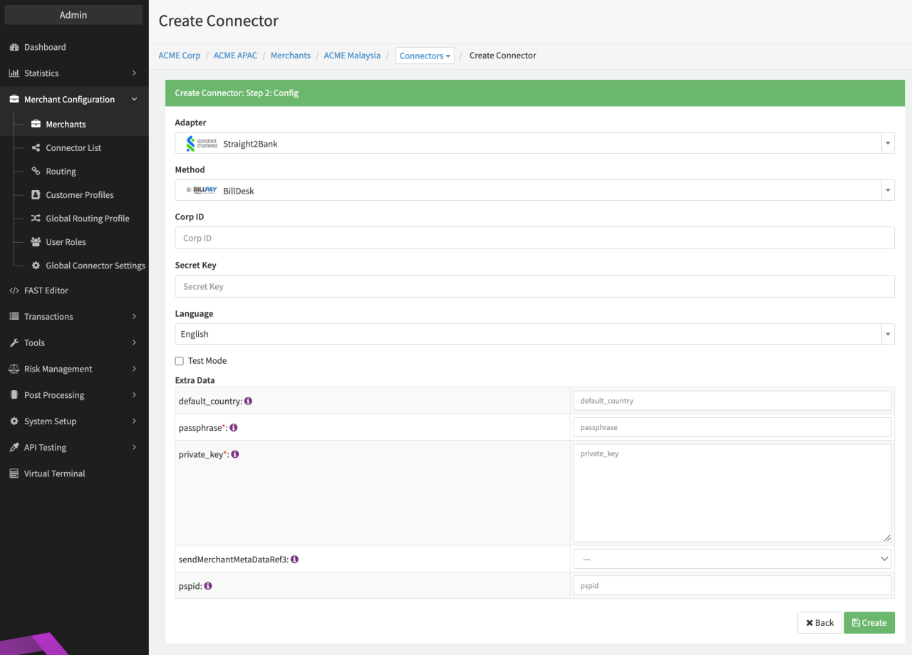 - Fill in the Extra Data: pspid — in case you receive this parameter from the PSP