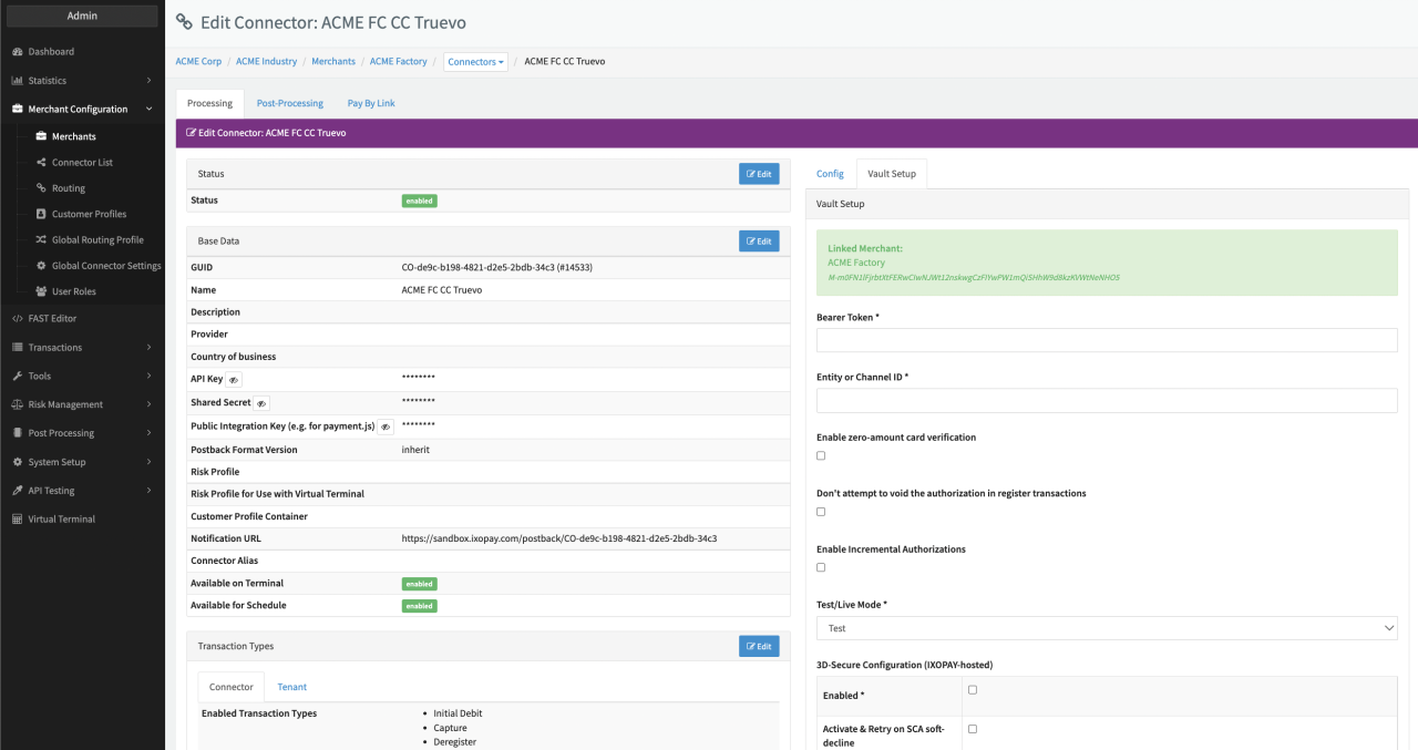 Configure the following parameters for the Connector (see Connector Detail Overview - Truevo Creditcard - Vault Configuration):