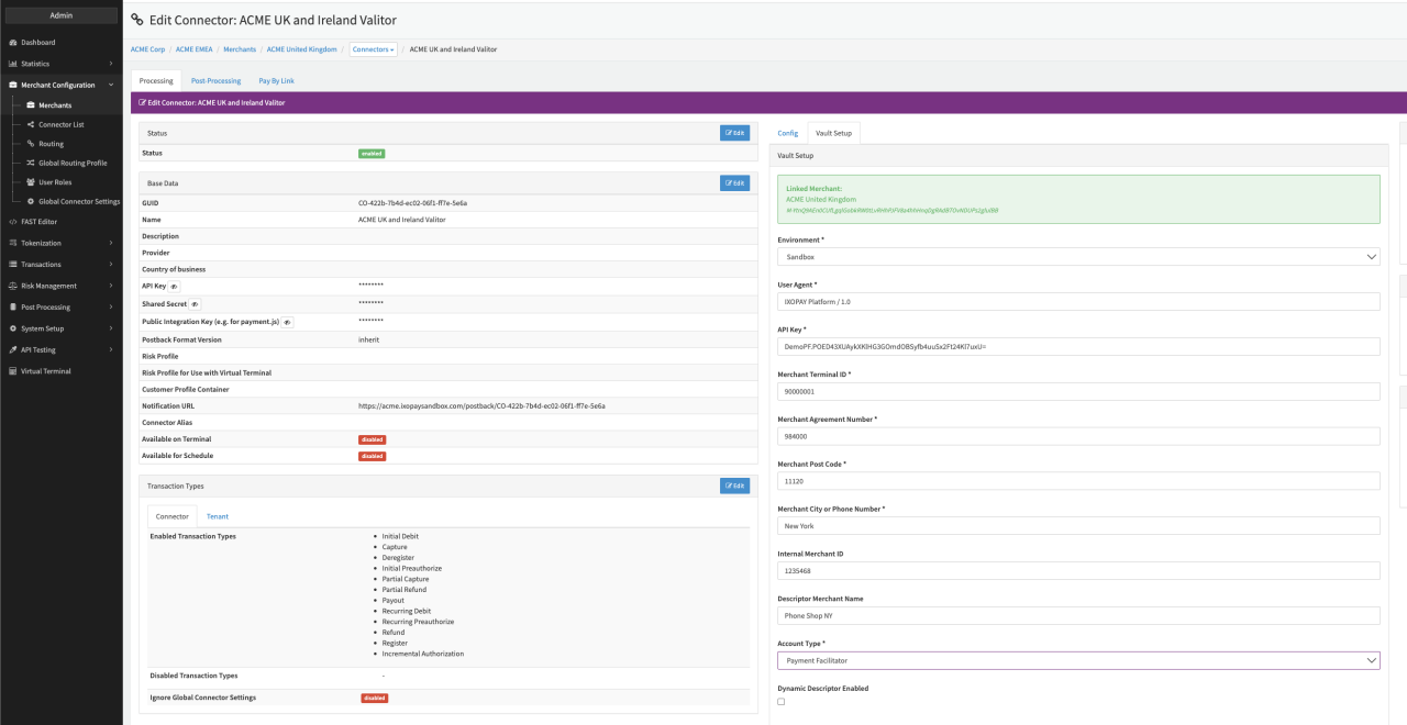 Configure the following parameters for the Connector (see Connector Detail Overview - ValitorPay Creditcard - Vault Configuration):