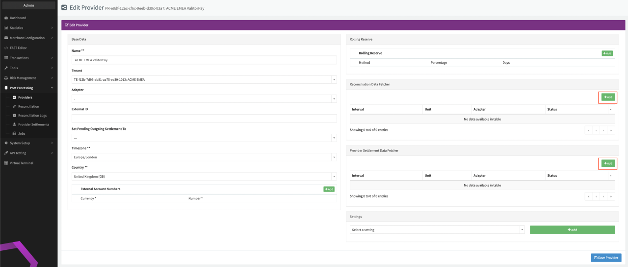 (see Edit Provider Settlement Data Fetcher Provider Level).