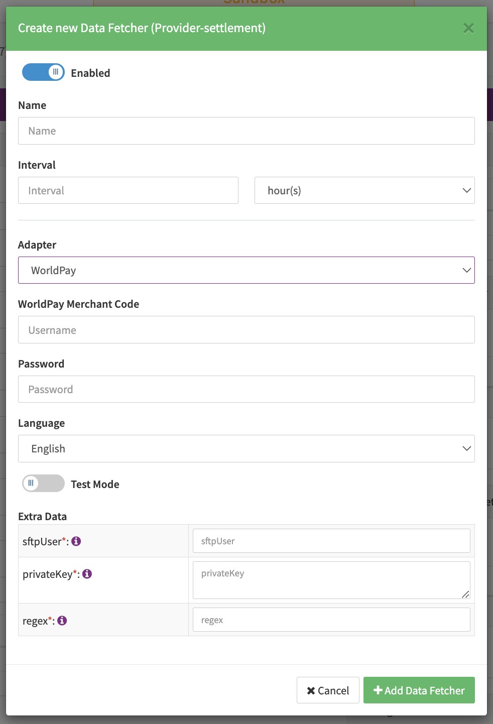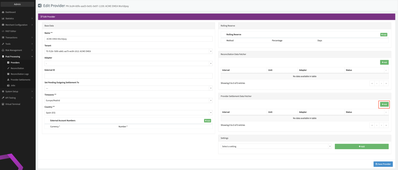 - Fill in the expected Interval in which the Provider Settlement File should be fetched - days, hours