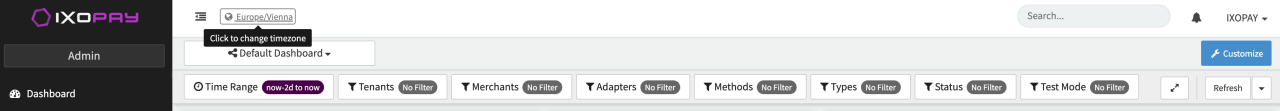 The timezone configured for your account is applied to all events, transaction details and reporting within IXOPAY. To set up or change your account's timezone: