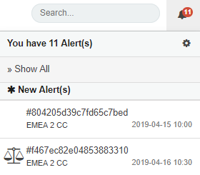 - Click the Bell icon in the top bar (see Alert Settings) to open the drop-down