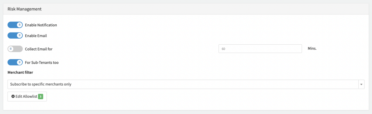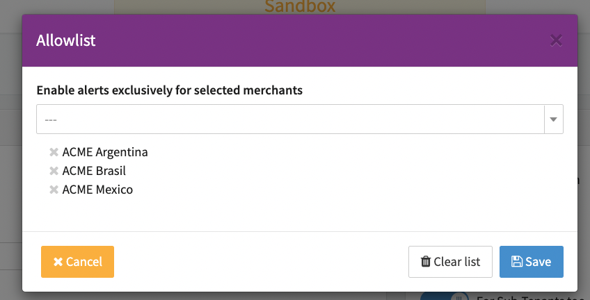 - Subscribe to specific Merchants only: Click Edit Allowlist and select one or more Merchants. (see Subscribe to specific Merchants only and Modify Allowlist / Blocklist)