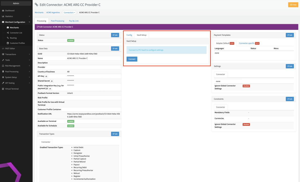 Please note, that you have to connect to the PCI Vault first, before being able to edit the 3DS Configuration.