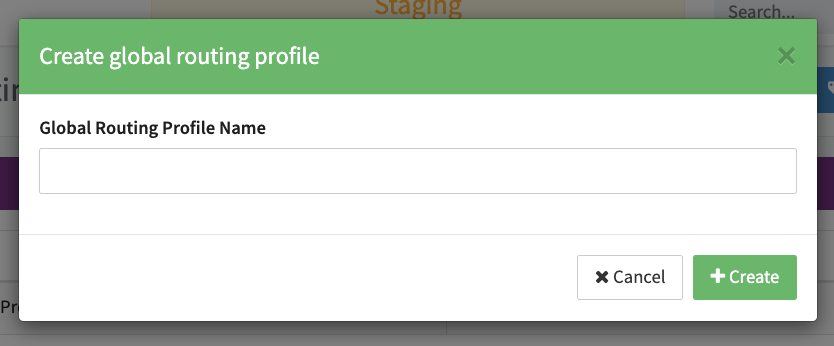 - Click on + New Global Routing Profile (see Image Global routing settings).