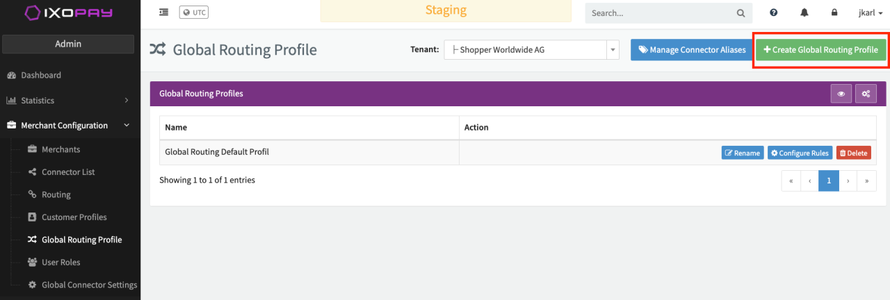 After creation, Global Routing Profiles can be renamed or deleted (see Image Global Routing Profil Overview). Keep in mind that deleting profiles might have impact on your connectors.