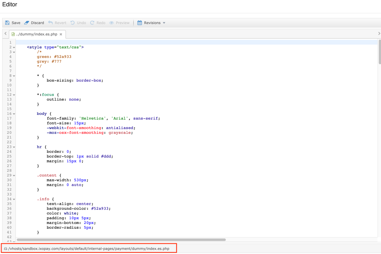 If you want to delete a template you have to do so to the FAST Editor by deleting the file from the folder structure there. You can find the path by clicking the Edit button (see Existing templates) in the Payment Templates section of th e Connector Details Overview on the bottom of the editor (see File Path FAST Editor).